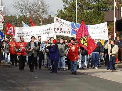 Une vague de grèves d'avertissements, organisée par le syndicat IG Metall, a lieu dans l'industrie des machines en Allemagne. L'enjeu immédiat est le renouvellement du contrat collectif (Tarifvertrag) réglant les salaires. Mais les patrons, réunis dans l'association patronale Gesamtmetall, sont à l'offensive. Ils ont saisi cette échéance pour mettre sur la table deux de leurs objectifs essentiels: l'affaiblissement des contrats collectifs de travail nationaux et l'augmentation du temps de travail, sans compensation salariale automatique, donc avec une baisse de salaire.