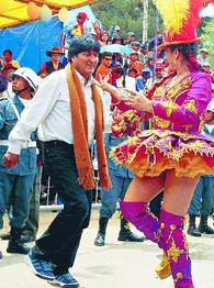 La popularité du président s'est révélée le dimanche 26 février lorsqu'il participa à la grande réunion folklorique de Oruro, ville où se déroule la plus grande manifestation du carnaval en Bolivie. Dans l'avenue du 6 août, devant la tribune d'honneur, construite pour recevoir la délégation gouvernementale, Evo Morales fut porté en triomphe par la foule. Deux danseuses du groupe la Morenada Mejillones ont invité le président et le vice-président à descendre de la tribune pour danser. Les deux représentants gouvernementaux ont accepté avec plaisir. Par trois fois, ils furent invités par divers groupes de danseuses pour participer au bal. Et chaque fois ils l'ont accepté, descendant de la tribune d'honneur sous les applaudissements et les ovations de la foule [ceci, a contrario, indique la distance existant antérieurement entre les gouvernants et la population indigène, de la ville historique, minière, de Oruro].