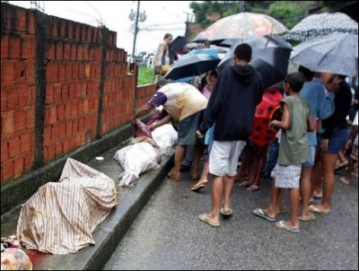 De tels instruments – qui constituent un pas en avant en vue de transformer les favelas et les ghettos périphériques en camps de concentration et de rendre plus efficace l’action des chars blindés et des forces de répression (tous des «pacificateurs») – sont maintenant présentés comme étant une solution au problème des pluies. Plutôt que d’urbaniser les favelas, de régulariser le droit au sol, de construire des logements décents et d’effectuer des travaux de stabilisation des terrains en pente, on «contient» les personnes, par des murs et par des armes. Et si c’était la solution du déplacement qui devait être retenue, alors Cabral a également annoncé que la Police Militaire [une force particulièrement répressive] se tenait à la disposition de tous les préfets pour rendre cette politique effective.