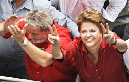 Lula et Dilma Rousseff à Eéalengo, à 60 kilomètre de Rio, le 24 octobre 2010