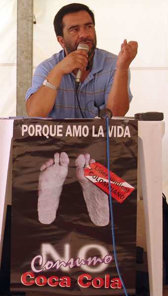 Ici à la tribune lors du Forum social tenu au Brésil: «Parce que j'aime la vie, je ne bois pas de Coca-Cola»