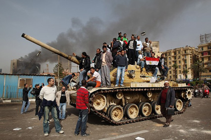 Samedi 29 janvier 2011, le président égyptien Hosni Moubarak a nommé deux généraux aux postes de vice-président (Omar Souleiman, chef du renseignement) et de premier ministre (Ahmad Chafic, ancien commandant de l'air et ministre de l'Aviation). Mais l'on voyait aussi, dans la capitale, des manifestants sympathiser avec des militaires.