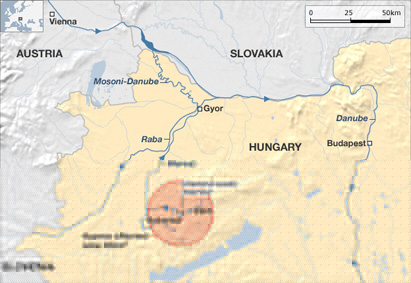 Ajka, le lieu de la catastrophe planifiée et le Danube.....