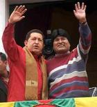 2. Selon l’Agence France-presse (AFP) le président vénézuélien Hugo Chavez et bolivien Evo Morales ont annoncé vendredi 26 mai à Shinaota, en pleine zone des planteurs de coca, le lancement «historique» d'une série de grands projets de développement portant sur 1,5 milliard de dollars et financés par le Venezuela. Vêtu d'un poncho et coiffé du «lluchu» (bonnet andin) Hugo Chavez a lancé: «Nous sommes là pour travailler, pour fonder une nouvelle alternative face aux politiques néo-libérales et aux accords de libre-échange». «Je me sens très fier c'est un jour historique», a rétorqué Evo Morales. «C'est la première fois de son histoire, que la Bolivie va commencer à industrialiser ses hydrocarbures». (NdR)