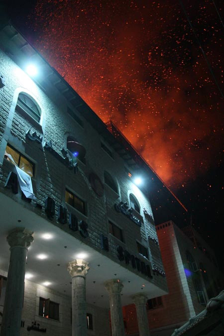 L'hôpital Al Quds en feu dans la nuit du 15 au 16 janvier 2006