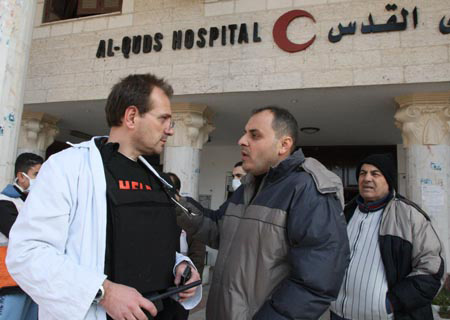 Quatre heures du matin, le 15 janvier 2009. Il fait un froid glacial. Tous les patients valides et le personnel de l’hôpital Al Quds de Gaza sont cachés dans les couloirs. Depuis 23h, les bombardements sont incessants. Ils viennent de redoubler d’intensité. Le bâtiment tremble. Les chars Israéliens sont à quelques centaines de mètres.