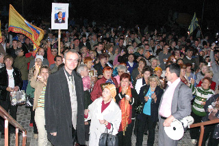 Dimanche 18 octobre s’est déroulé un moment fort dans la mobilisation des habitants. Plus de 2000 manifestants ont défilé dans les rues du centre ville jusqu’au Kremlin local, où ils ont allumé bougies et téléphones portables pour «faire vivre la flamme de l’espoir», expliquait l’une des participantes à la manifestation. Les gens chantaient sur le parcours, reprenaient en choeur les slogans: «Nous ne nous laisserons pas voler notre victoire !», «Shein est notre maire !».