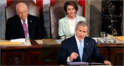 Dick Cheney, Nancy Pelosi et G.W.Bush, le 23 janvier 2007