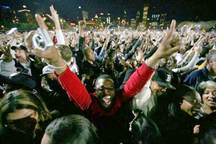 Tout opposant au racisme ne pouvait qu'être ému par le spectacle de Grant Park à Chicago, la nuit des élections, lorsqu'une foule multiraciale de 250'000 personnes joyeusement mêlées, a célébré la perspective de changement. Des familles entières sont venues écouter le discours de victoire ; des travailleurs syndiqués tenaient encore des pancartes pro-Obama; de nombreux immigrés sans droit de vote ont également participé à ce rassemblement.