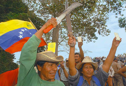 Chavez a répété à maintes reprises en 2005 "Soit j'en finis avec le latifundium, soit je mourrai en essayant de le faire". Fidèle à son style, il a dirigé en personne la division d'une propriété rurale privée de 8'490 hectares: il a laissé 1'500 hectares au propriétaire, il a conservé 2'700 hectares comme zone de protection d'un barrage et a attribué le reste à une coopérative agro-alimentaire récemment créée.