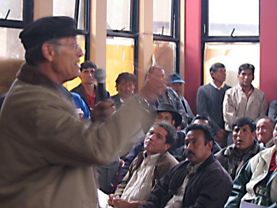 Dans l'Altiplano, dans Yungas, dans les Centres Miniers [souvent des mines coopératives qui n'ont plus du tout l'importance qu'elles avaient jusque dans les années 1980], dans le Chaparé {région proche de Cochabamba], les gens de la base sont en train de créer, à leur manière, des organes de pouvoir et d'autodéfense. Selon certains dirigeants, ces organes devraient être armés. Cette question délicate n'a pas été analysée en profondeur par le Congrès, mais a été mise en évidence par plusieurs organisations sociales.