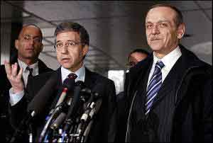Yossi Beilin, ancien ministre de la Justice de l'Etat d'Israël(à gauche) et Abed Rabbo, ancien attaché à l'Information de l'Autorité palestinienne