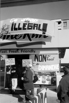 Fin octobre 2004, le MPS Fribourg a lancé un referendum contre la décision du Grand Conseil fribourgeois du 14 octobre 2004, qui va dans le sens de la prolongation des heures d'ouverture des commerces. Le referendum a abouti. La votation aura lieu le 5 juin. Voir l'article de La Brèche numéro 11