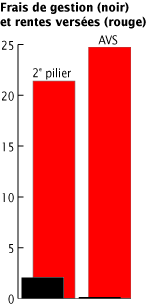 - Le 2e pilier engendre un vrai gaspillage. En 1996, il a engouffré 2 milliards de francs en frais de gestion, léquivalent de 9,3 % de ses 21,4 milliards de prestations. En comparaison, les frais de gestion de lAVS étaient 27 fois moins élevés : 81 millions de francs (0,34 %) pour 24,7 milliards de prestations AVS.