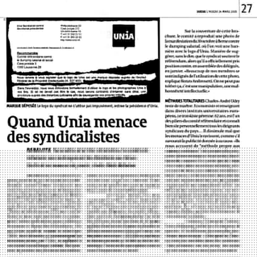 Nous reproduisons ci-dessous l’article paru dans L’Hebdo du 24 mars 2005, en page 27. Des journalistes, en Suisse, n’ont pas renoncé à un travail d’investigation. Un genre difficile. Il peut honorer cette profession.