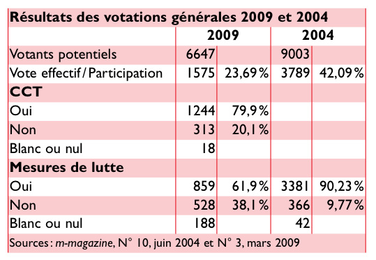 CCT: approuvé massivement… par 19% L’article publié dans la dernière Brèche a été bouclé avant que la votation générale portant sur l’approbation du nouveau Contrat collectif de travail (CCT) n’ait abouti. Le résultat est maintenant connu (voir tableau).