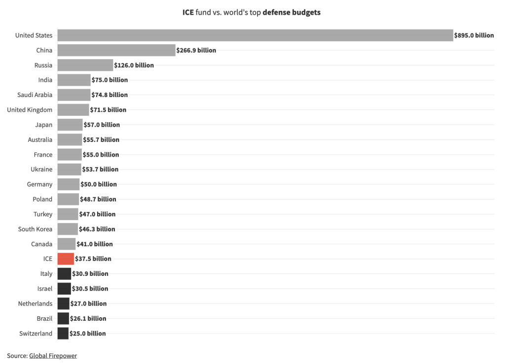 L’offensive de Trump contre les migrants aggravera encore les problèmes économiques des Etats-Unis. Son projet de loi prévoit une augmentation de 170 milliards de dollars du budget consacré à l’immigration, ce qui portera les dépenses annuelles de l’ICE (United States Immigration and Customs Enforcement) à près de 40 milliards (37,5) de dollars, ce qui est plus élevé que le budget militaire de 15 pays. Il a déjà fermé la frontière et lancé des raids dans tout le pays, déclenchant une résistance à Los Angeles et dans tout le pays.
