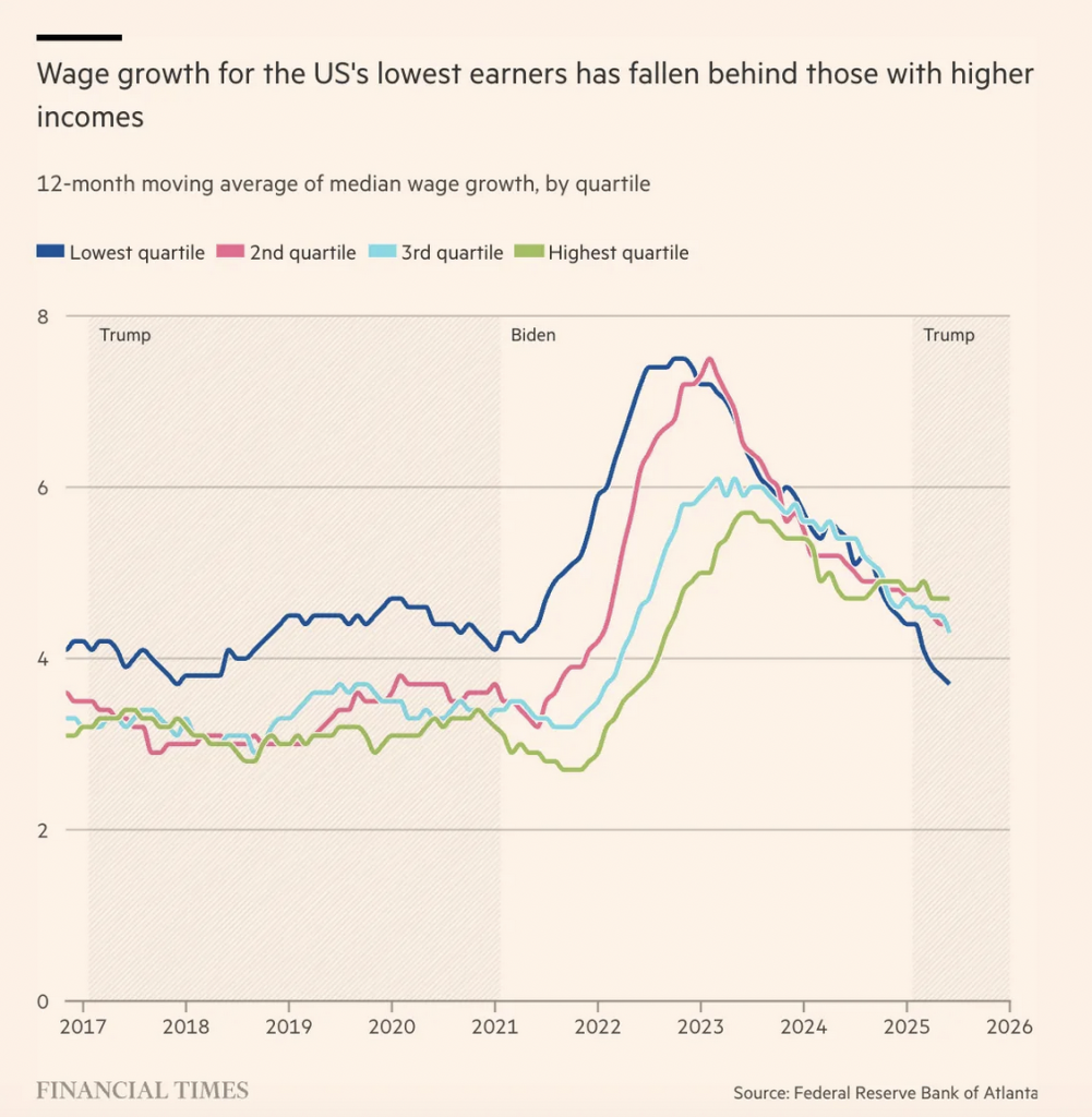 Toute diminution de présence de la main-d’œuvre dans ces secteurs vitaux entraînera une hausse des salaires, provoquant des pénuries, une augmentation des prix et une hausse de l’inflation. Signe de désespoir, la secrétaire à l’Agriculture Brooke Rollins a lancé une proposition sadique et absurde visant à utiliser de nouvelles exigences en matière de travail obligatoire pour forcer les bénéficiaires de Medicaid à remplacer des millions de travailleurs expulsés. [Dans Politico du 8 juillet, Brooke Rollins déclare: «Avec 34 millions de personnes, des adultes valides bénéficiant de Medicaid (qualifiées comme ayant des ressources limitées ou considérées comme handicapées), nous devrions être en mesure de le faire assez rapidement», faisant référence aux participants à Medicaid actuellement dans le programme qui ne répondent pas encore aux nouvelles exigences de travail du programme de réinsertion. – Réd.]