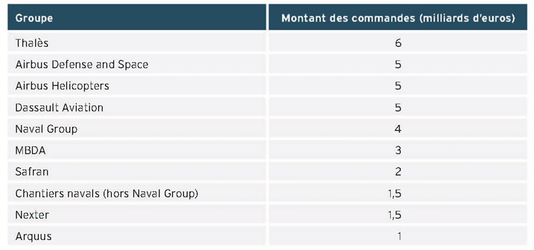 Au-delà même de cette situation enviable et d’un soutien irrévocable aux exportations d’armes, les industriels bénéficient de l’avantage de connaître « les objectifs de parcs [d’équipements militaires] à l’horizon 2030 et 2035 et donc d’anticiper les commandes à venir. Peu d’entreprises dans le monde civil peuvent se réjouir d’avoir une telle visibilité des commandes de leur client principal », déclare un rapporteur sur le budget des armées 202517. L’industrie d’armement dans son ensemble devrait être stimulée par les augmentations du budget militaire. Cependant, les grands groupes de l’armement seront les principaux bénéficiaires, puisque la Direction générale de l’armement (DGA) négocie exclusivement avec eux les grands contrats d’armes (tableau 1).
