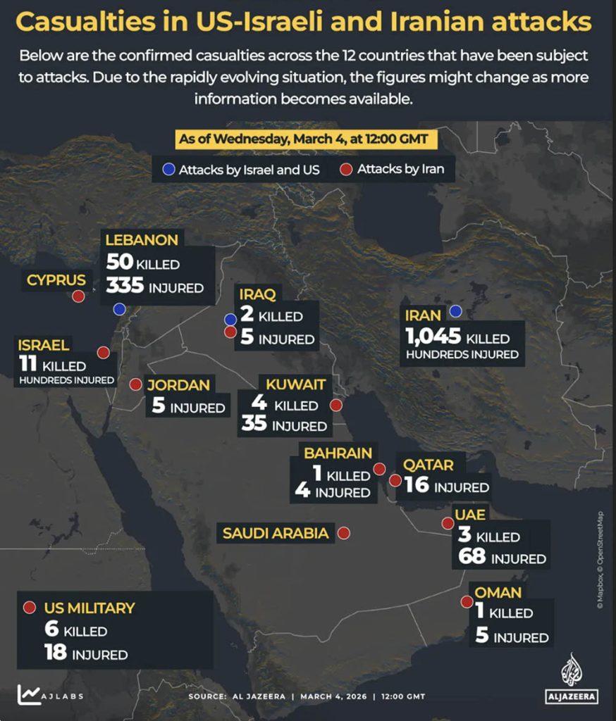 Les conséquences se font déjà sentir: échanges de missiles, attaques contre des bases, des hôtels et des ports, activation de réseaux alliés dans toute la région du Golfe. Les responsables états-uniens admettent désormais leur incertitude quant à la durée et à la portée de la campagne militaire, voire quant à leur volonté d’engager des troupes terrestres dans cette entreprise téméraire. Il ne s’agit pas d’une opération limitée aux résultats prévisibles. Il s’agit d’une confrontation qui s’étend et dont les limites sont de plus en plus difficiles à définir.