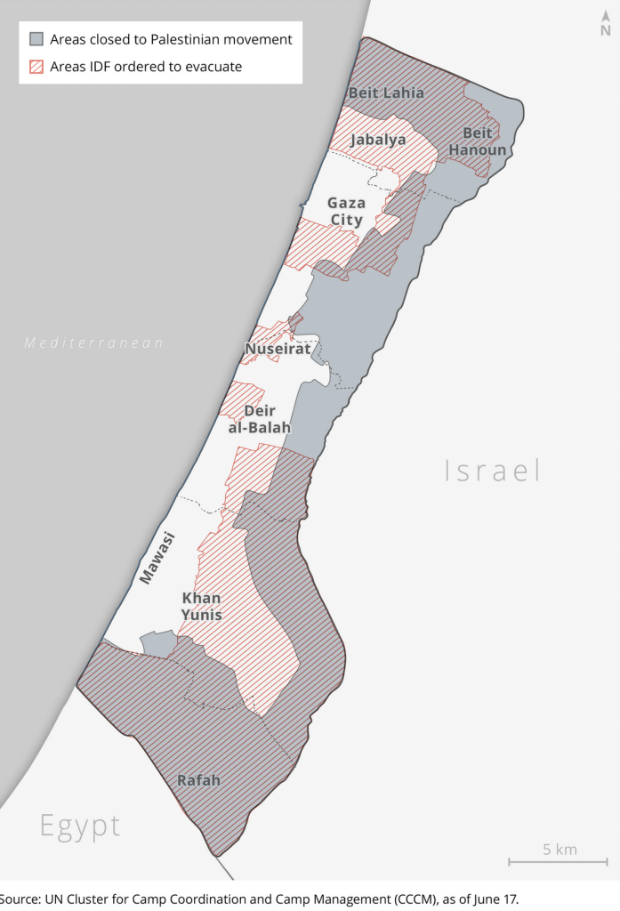 Depuis le 27 mai, plus de 400 Palestiniens ont été tués et plus de 3000 blessés alors qu’ils attendaient l’aide, selon le porte-parole de la défense civile de Gaza, Mahmoud Basel. L’attaque la plus meurtrière contre des personnes en quête d’aide a eu lieu le 17 juin, lorsque les forces israéliennes ont tiré des obus de char, ont utilisé des mitrailleuses et des drones contre une foule de Palestiniens à Khan Younès, tuant 70 personnes et en blessant des centaines d’autres.