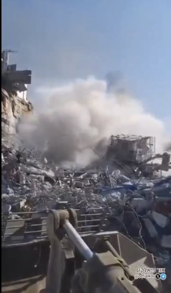 G., comme indiqué, a refusé d’entrer au Liban afin de ne pas participer à la destruction des villages, mais depuis le côté israélien de la frontière, il a vu et entendu ce que son bataillon faisait là-bas. «Une partie des destructions a eu lieu après que tout avait déjà été conquis et qu’il n’y avait plus de résistance… J’ai vu des preuves de destructions intentionnelles sur le WhatsApp du bataillon. Des soldats du bataillon se sont filmés en train de faire sauter des bâtiments. Mon bataillon n’est entré qu’après qu’il n’y avait plus de Hezbollah, plus d’armes, plus de bâtiments utilisés à des fins militaires secondaires [contre Israël] – rien qui [puisse être pris pour cible] en vertu du droit de la guerre.»